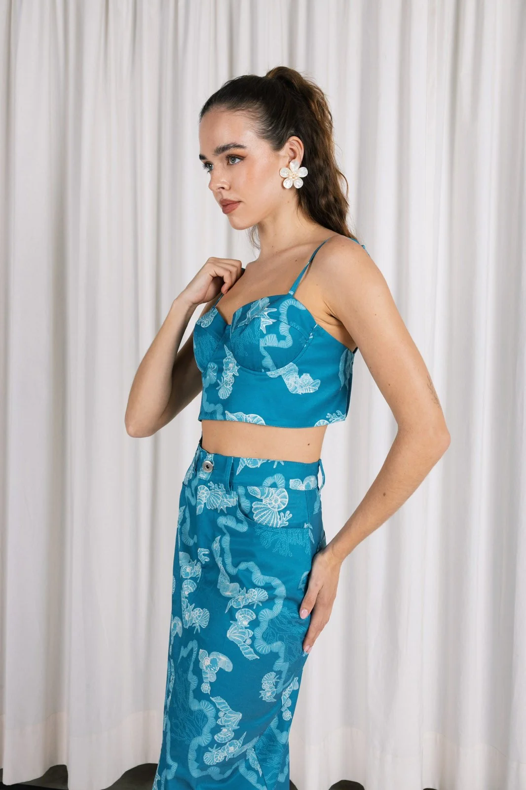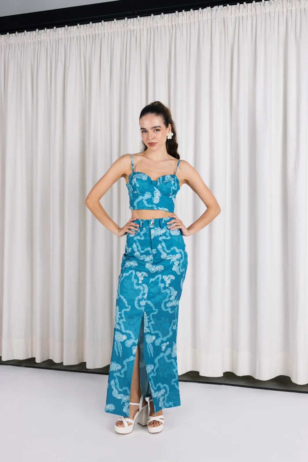 Midi pencil φούστα με μοτίβο σε μπλε αποχρώσεις.