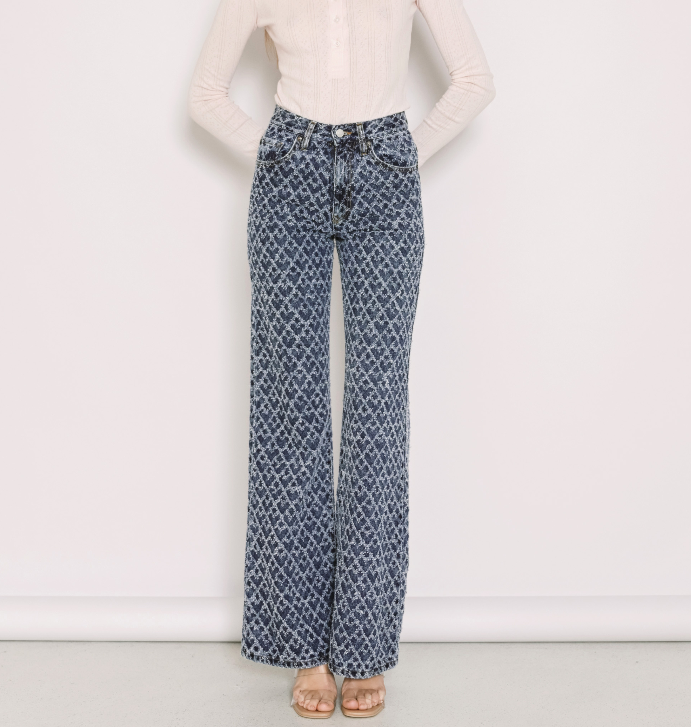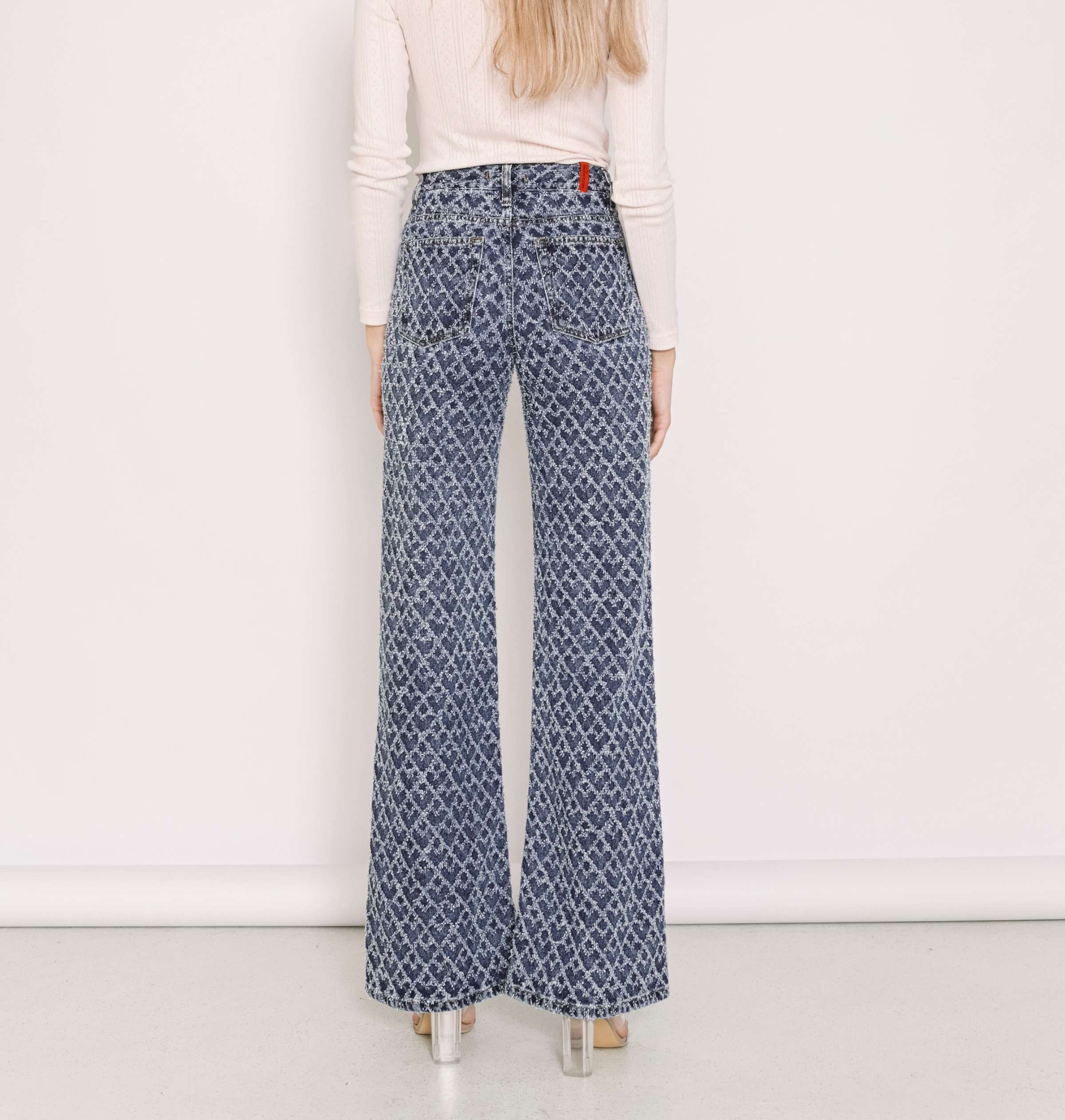 Ψηλόμεσο τζιν παντελόνι σε wide leg γραμμή και καρδιές μοτίβο.