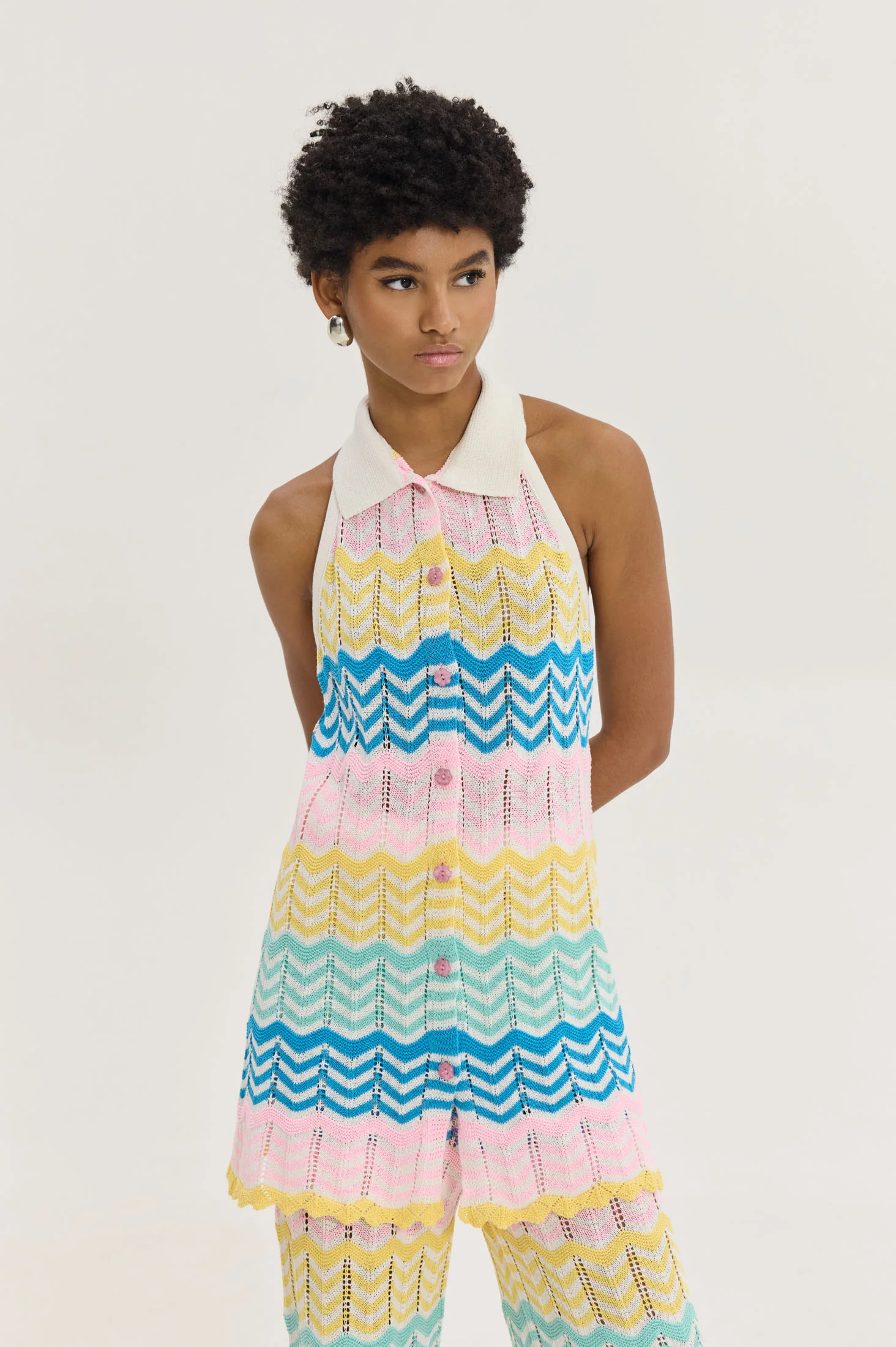 Πλεκτό τοπ με ρίγες και ανοιχτή πλάτη.
