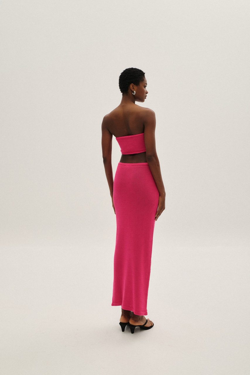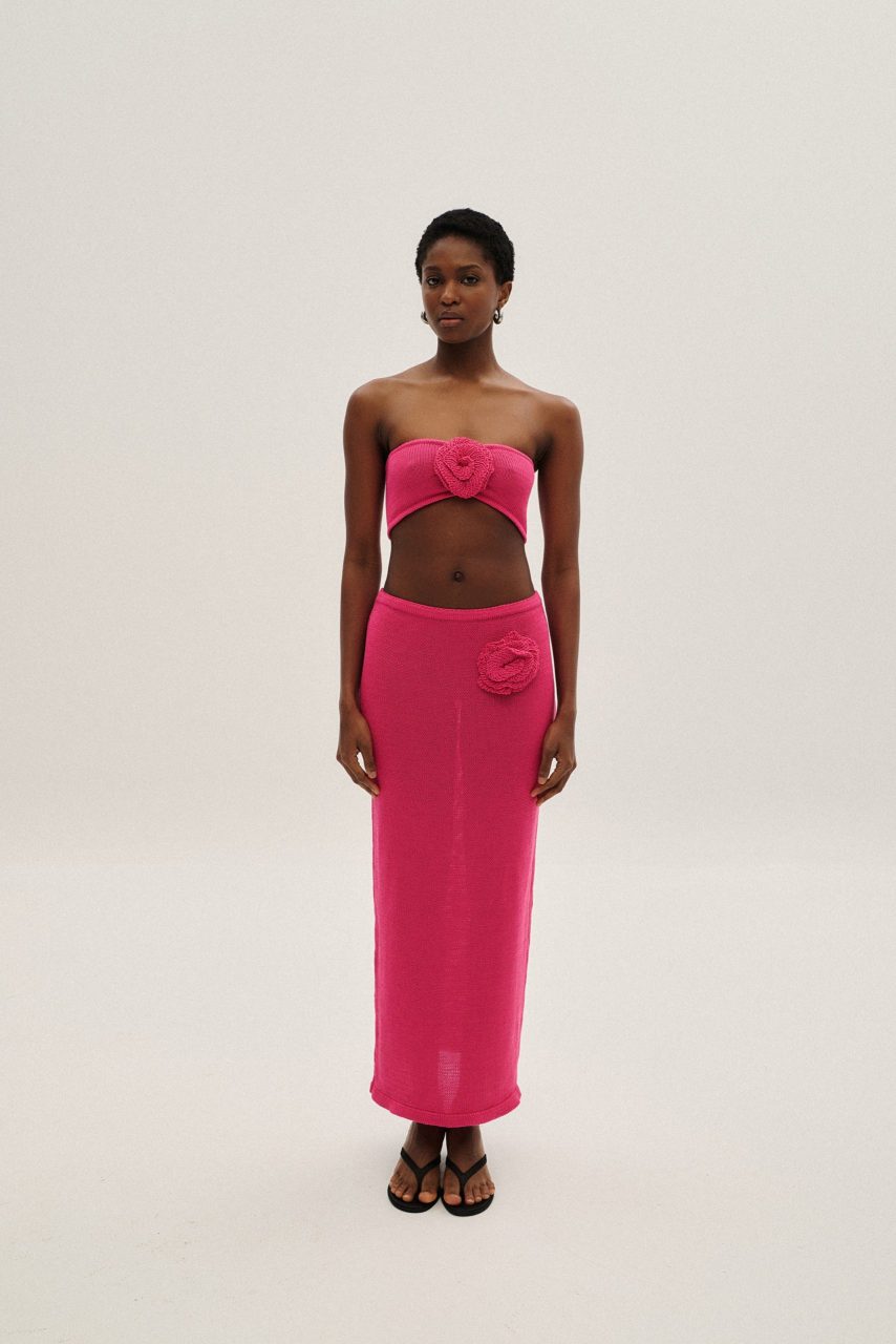 Maxi πλεκτή φούστα με λουλούδι σε μαύρο χρώμα.