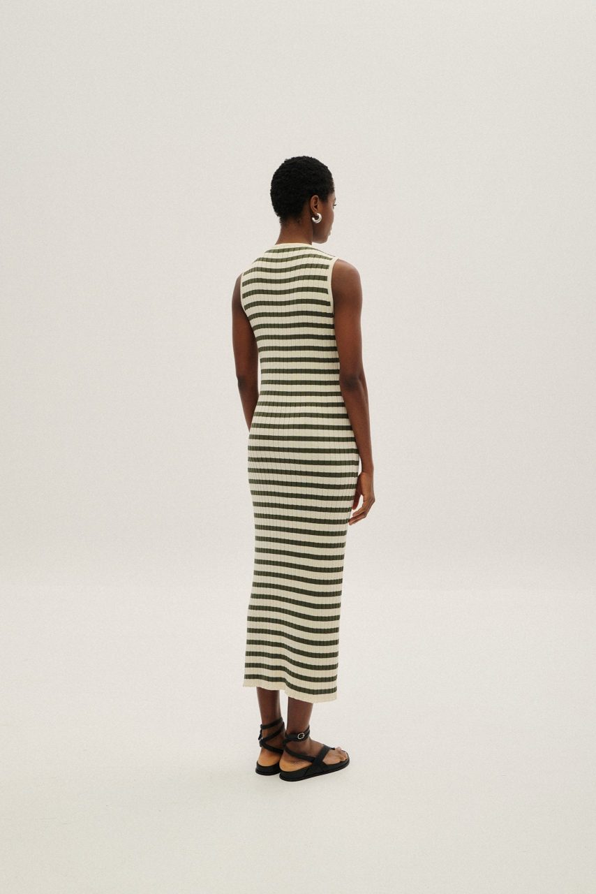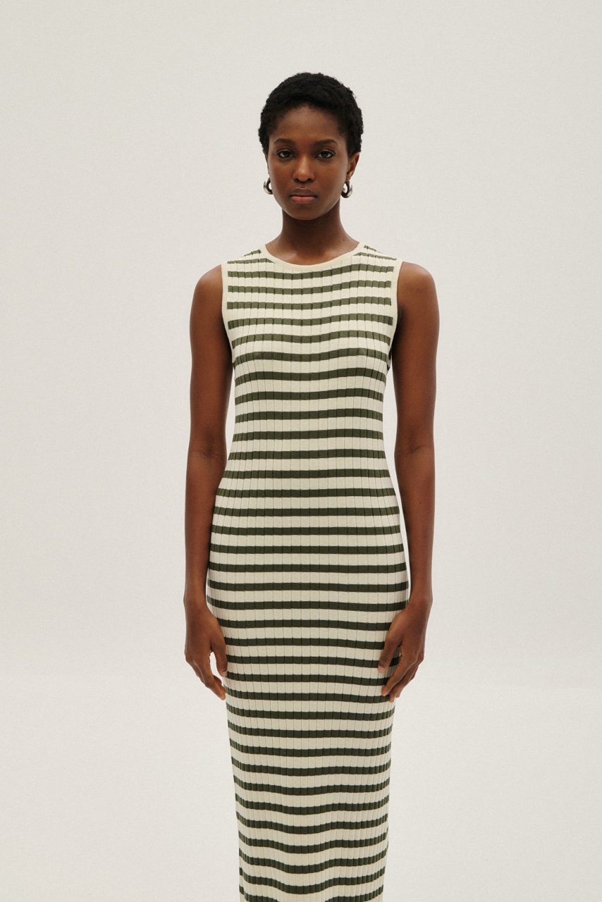 Maxi ριγέ φόρεμα σε αποχρώσεις του εκρού και του χακί.