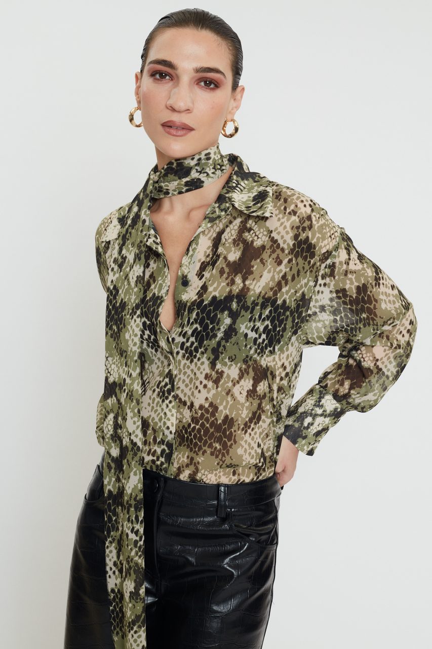 Μακρυμάνικο πουκάμισο snake print σε olive απόχρωση.