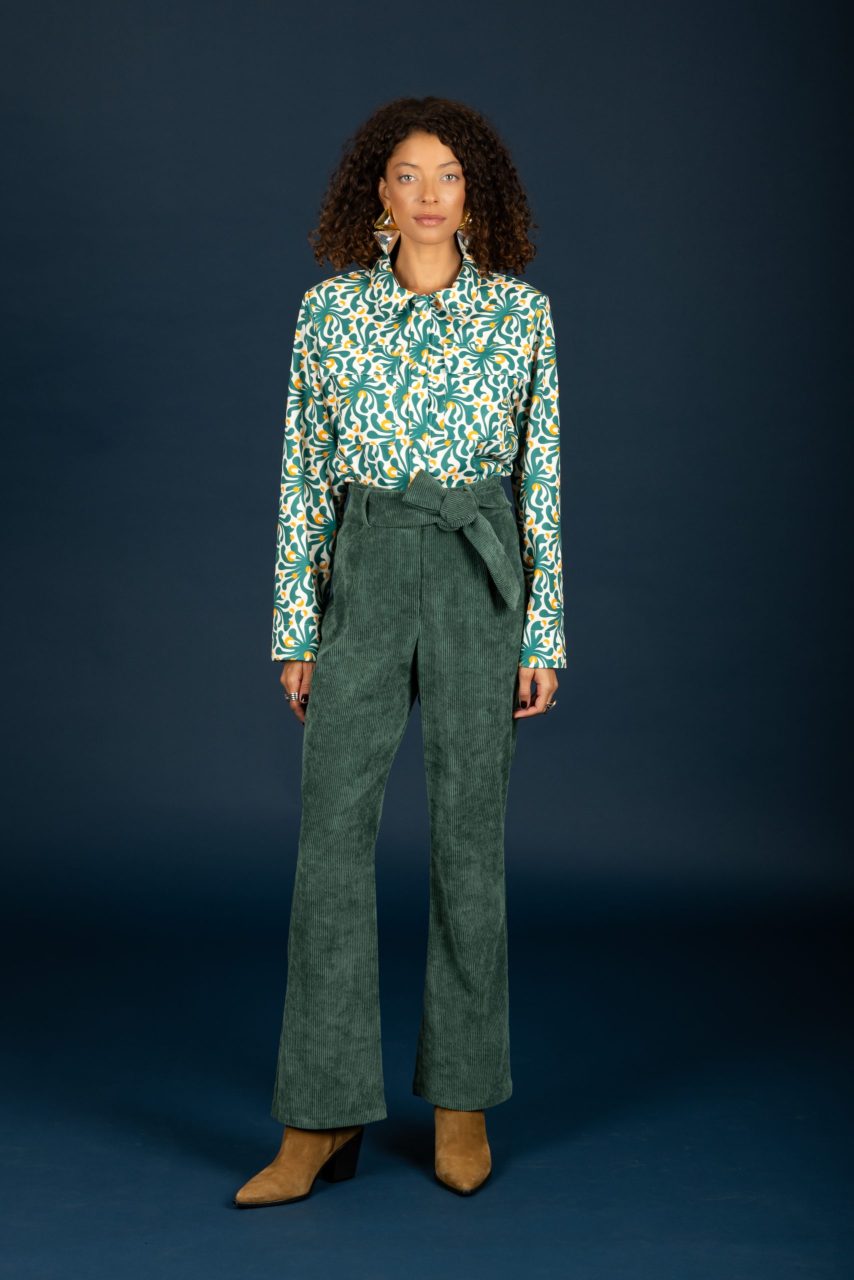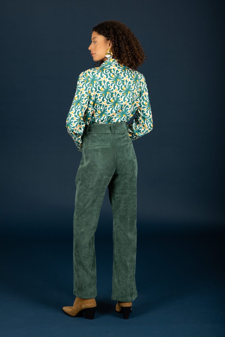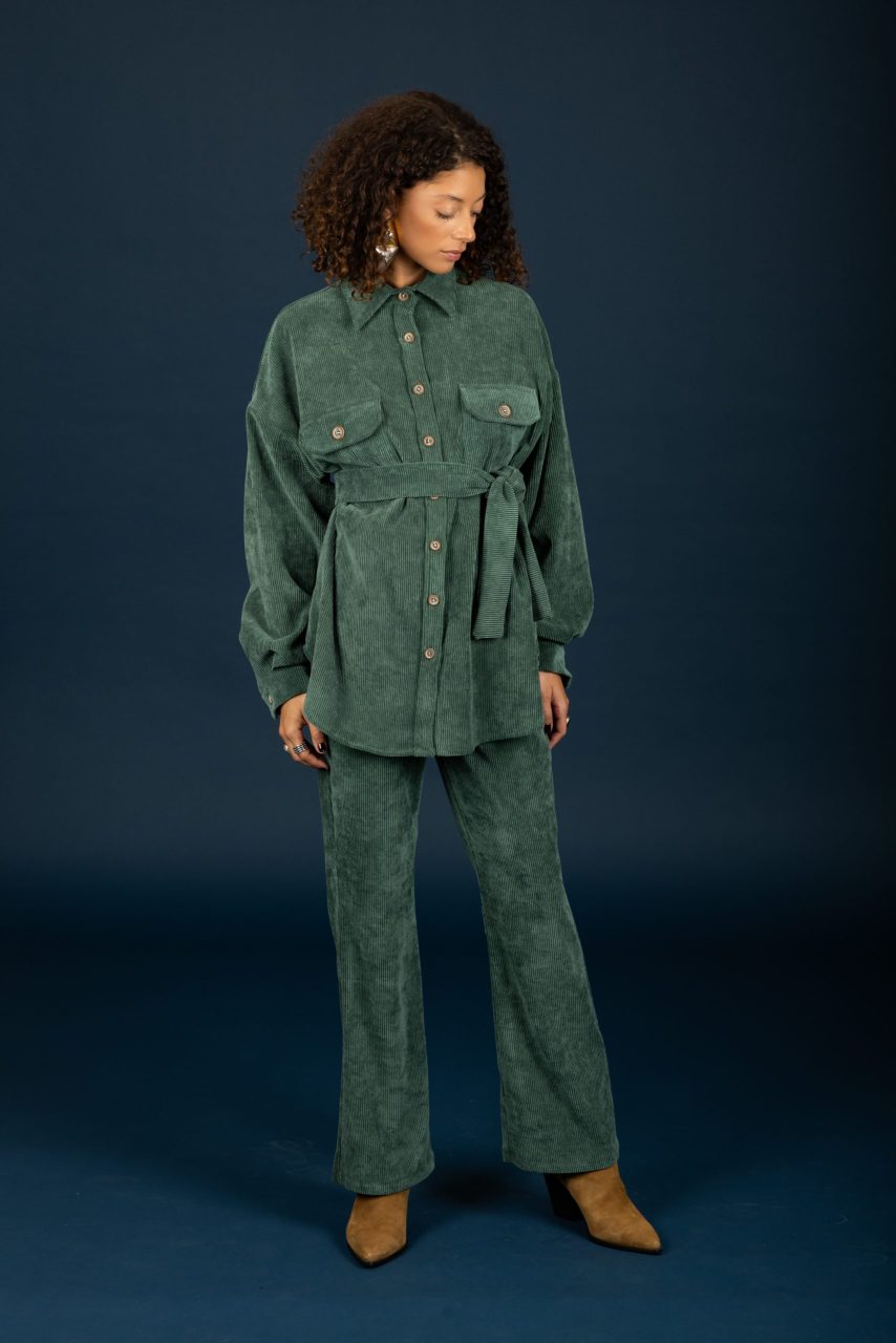Κοτλέ παντελόνι σε σκούρο πράσινο χρώμα.