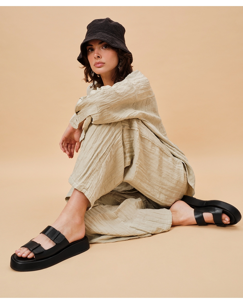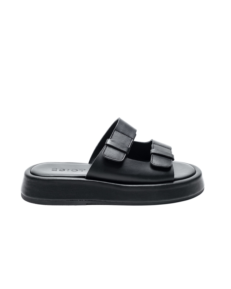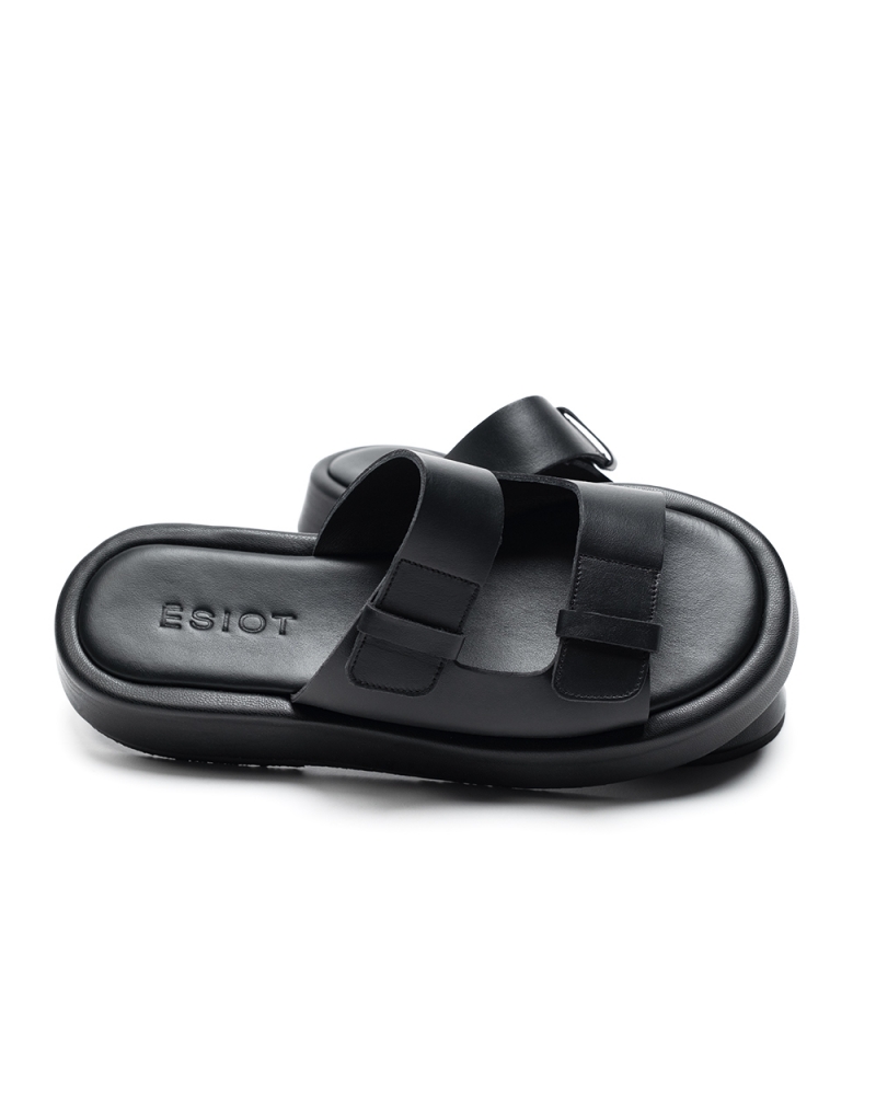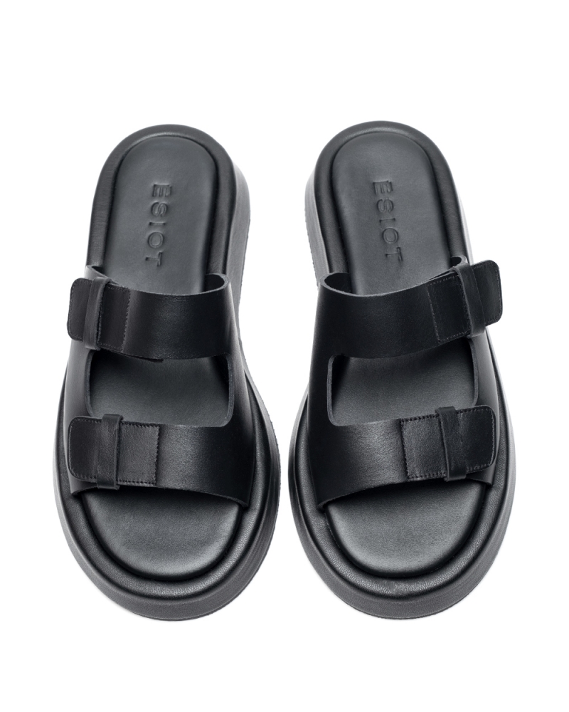 Μαύρες δερμάτινες χειροποίητες παντόφλες.