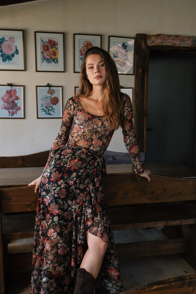Maxi φούστα με κρουαζέ δέσιμο.