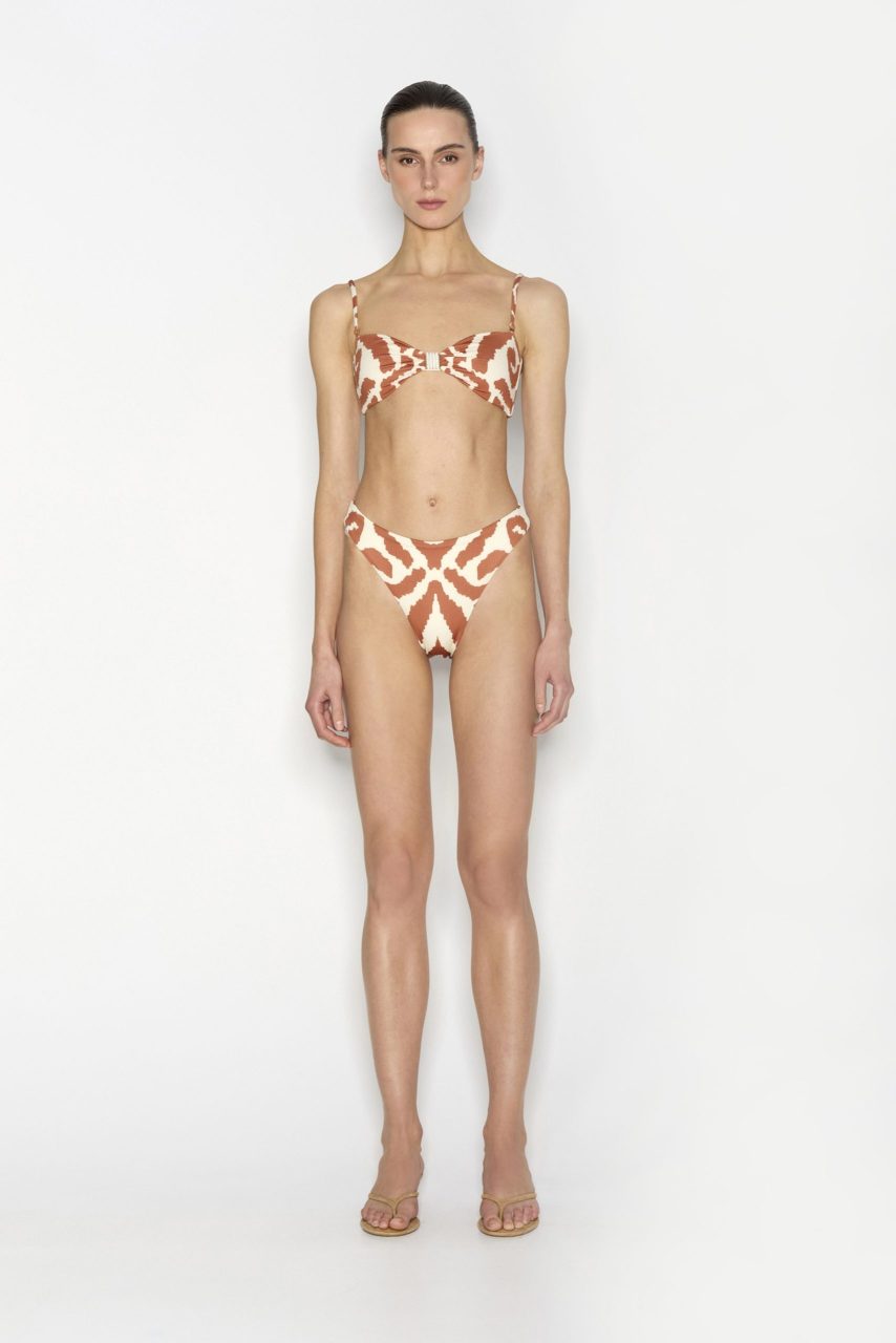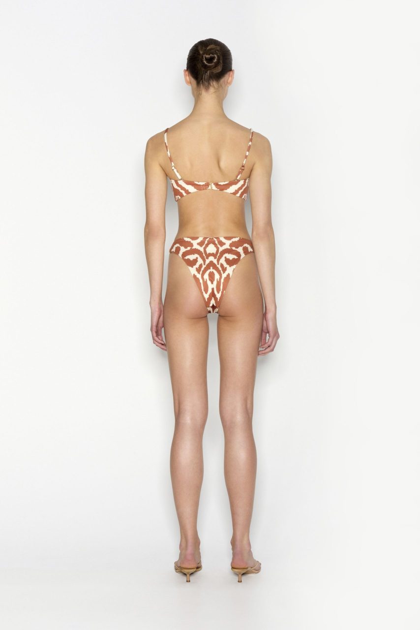 Μπικίνι με μοτίβο σε καφέ αποχρώσεις και μπεζ φόντο.