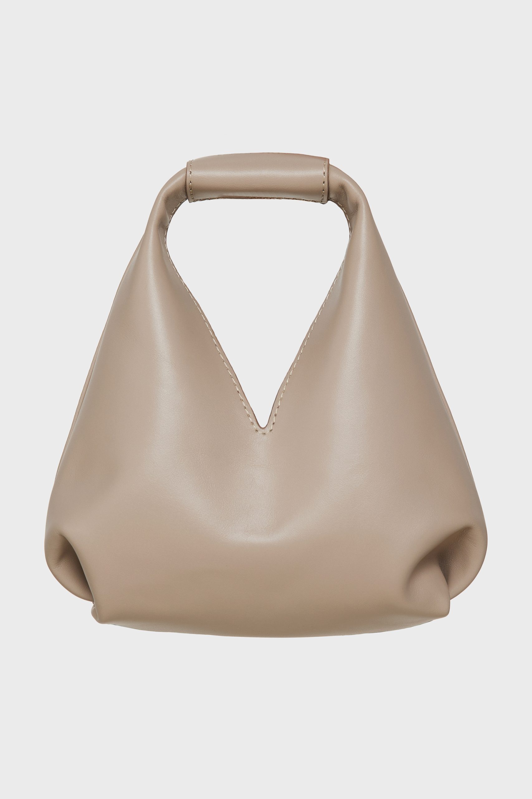 Δερμάτινη τσάντα σε γκρι χρώμα.