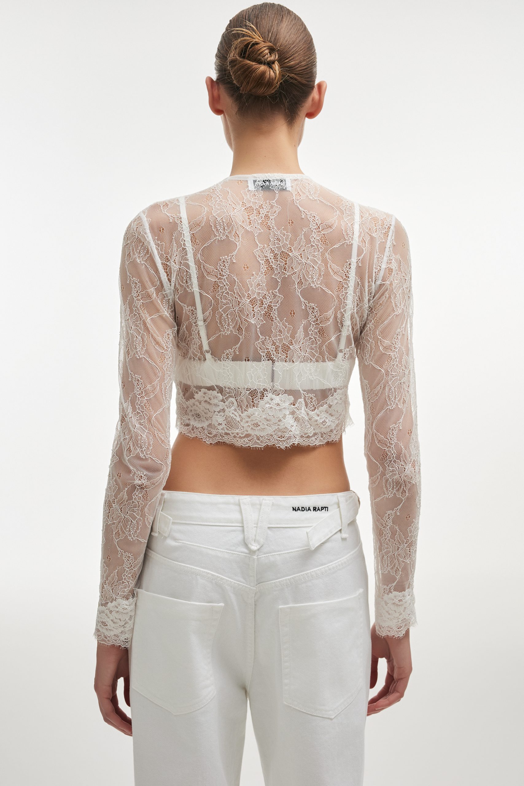Δαντέλα ζακέτα σε λευκό χρώμα.