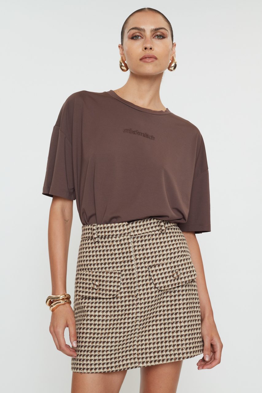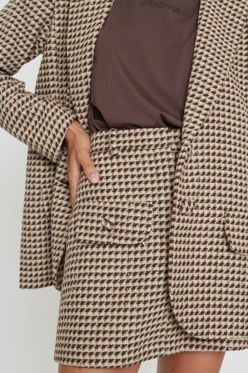 Mini φούστα σε αποχρώσεις του μπεζ και καφέ με στρας.
