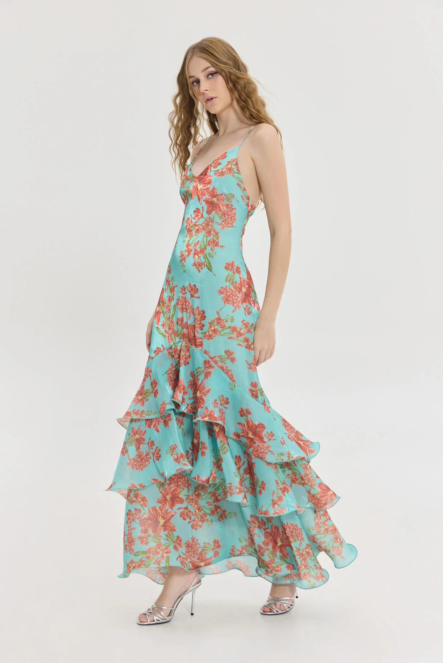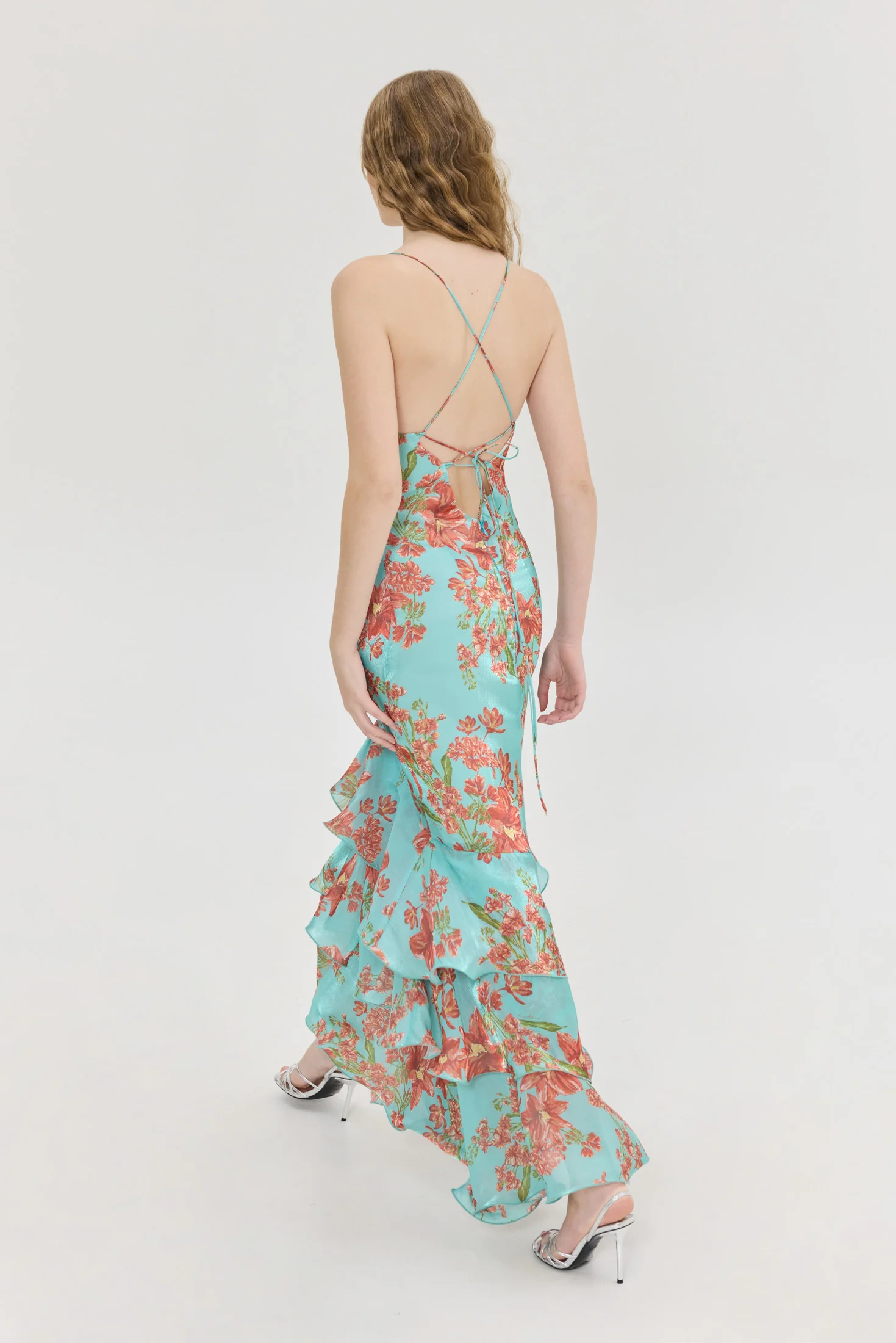 Maxi φόρεμα με βολάν και ανοιχτή πλάτη.
