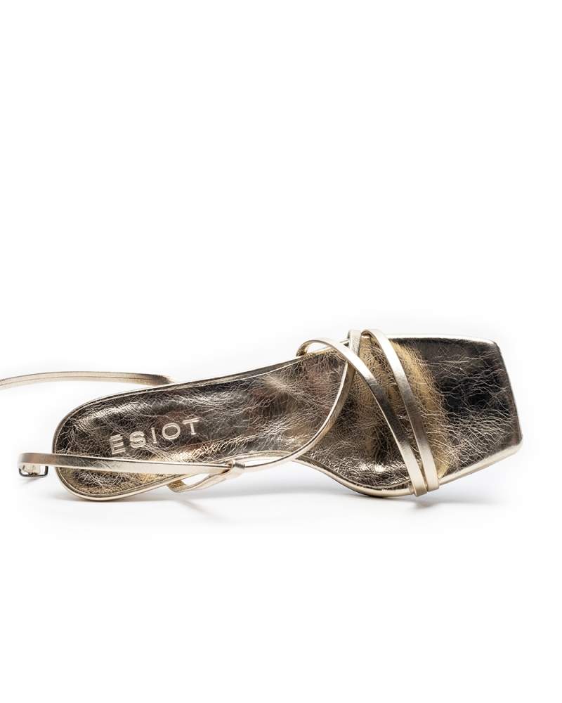 Χρυσά δερμάτινα χειροποίητα σανδάλια με τακούνι.