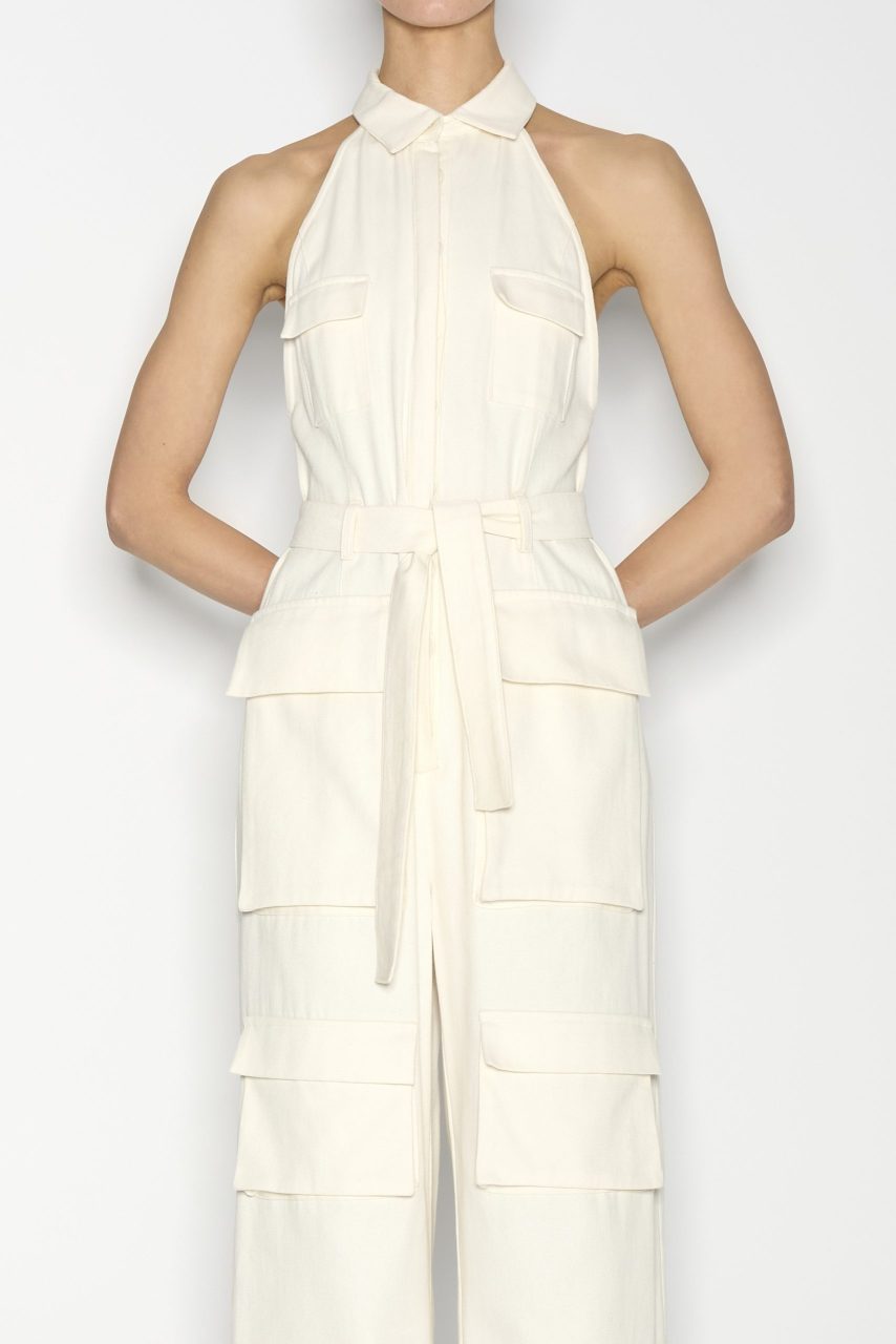 Ολόσωμη φόρμα halteneck σε εκρού χρώμα.