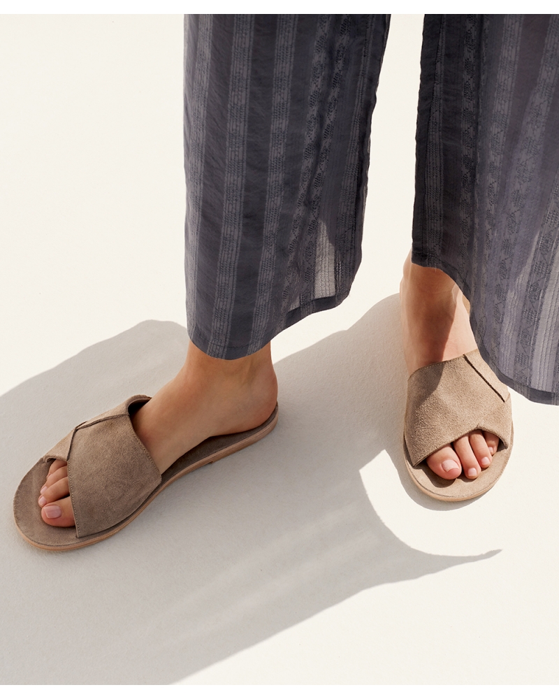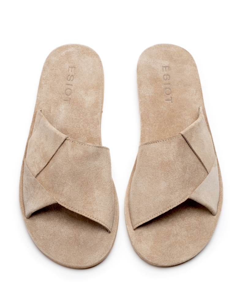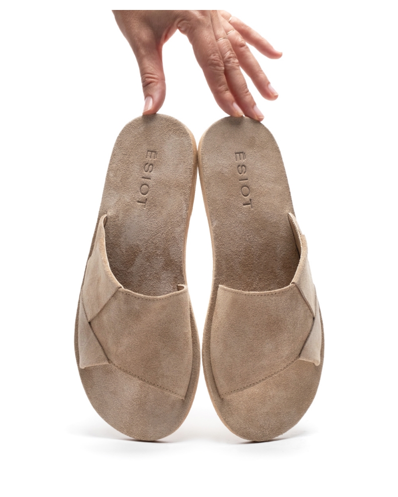 Χειροποίητα σουέτ σανδάλια στο χρώμα της άμμου.