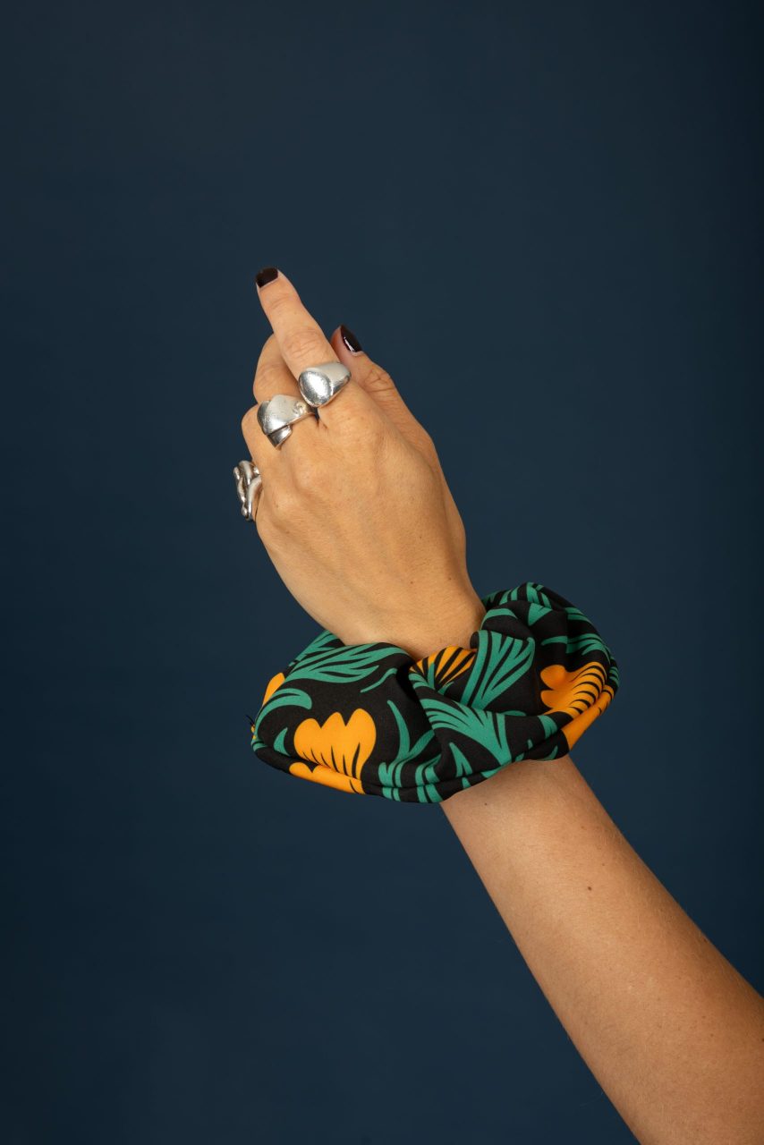 Scrunchie μαλλιών με χρωματιστό μοτίβο.