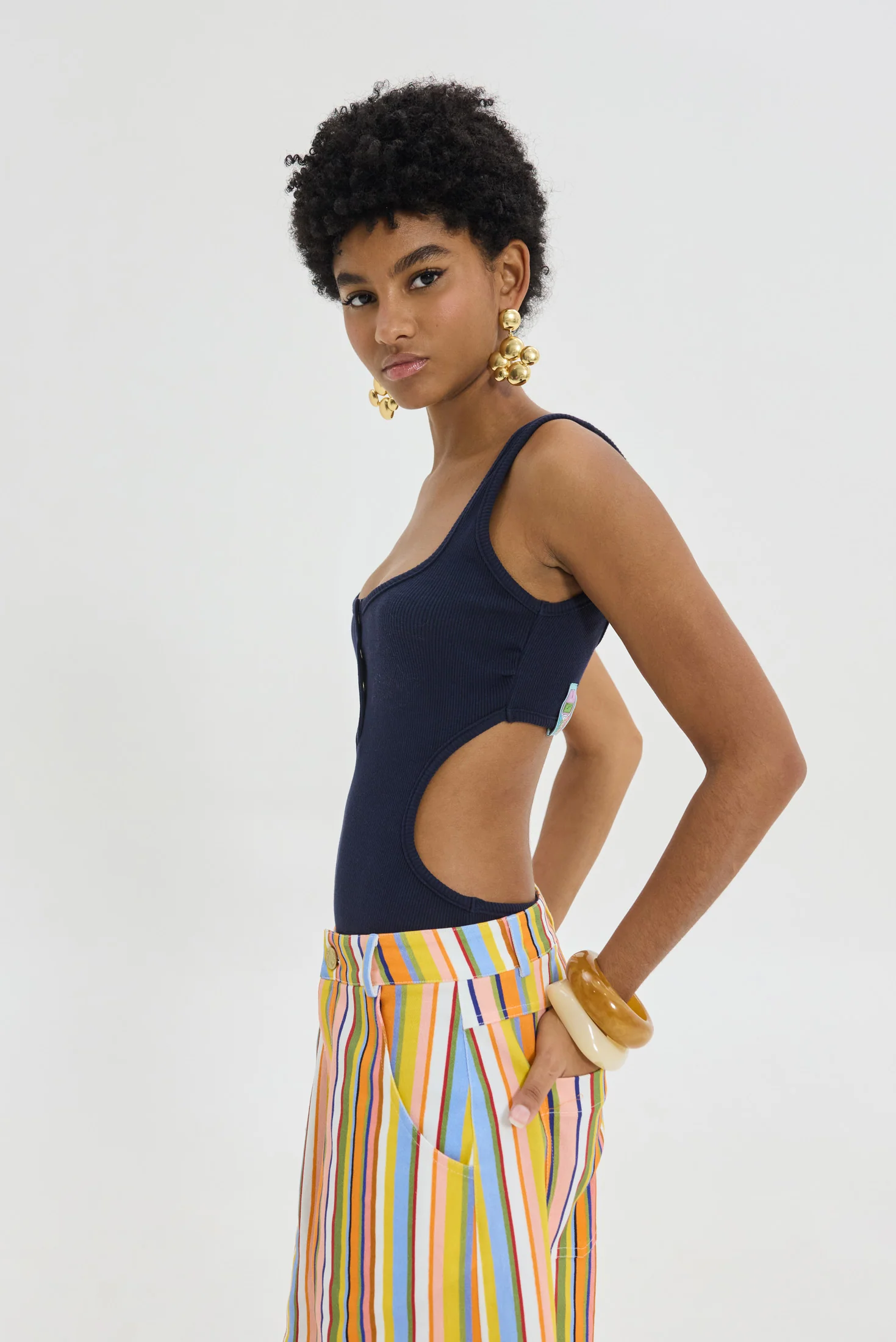 Κορμάκι με cut out σε σκούρο μπλε χρώμα.