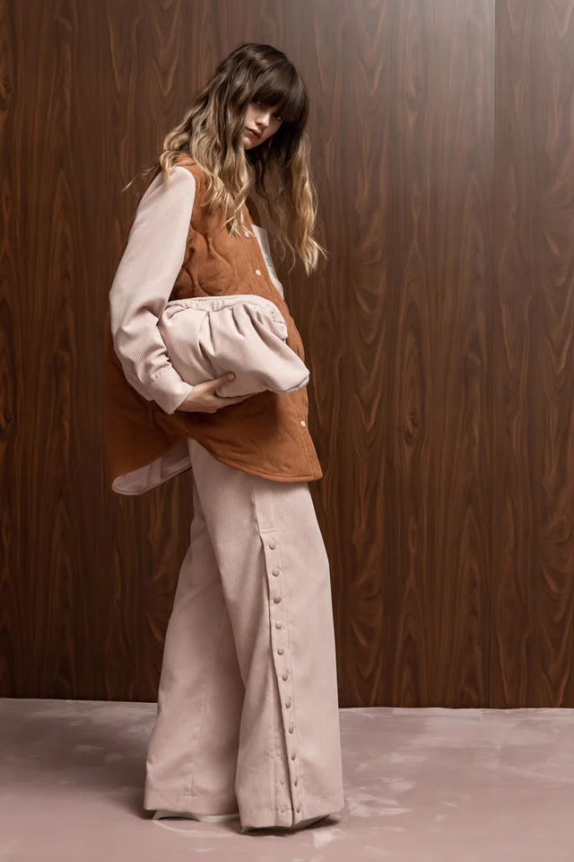 Κοτλέ παντελόνι με κουμπιά στο πλάι σε ροζ χρώμα.