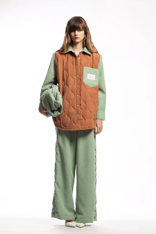 Κοτλέ παντελόνι με κουμπιά στο πλάι στο χρώμα της μέντας.