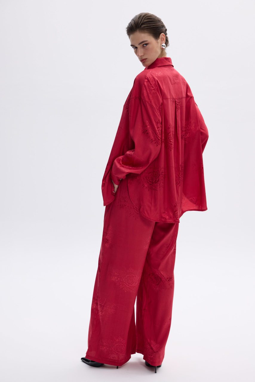 Floral σατινέ παντελόνι σε κόκκινο χρώμα.