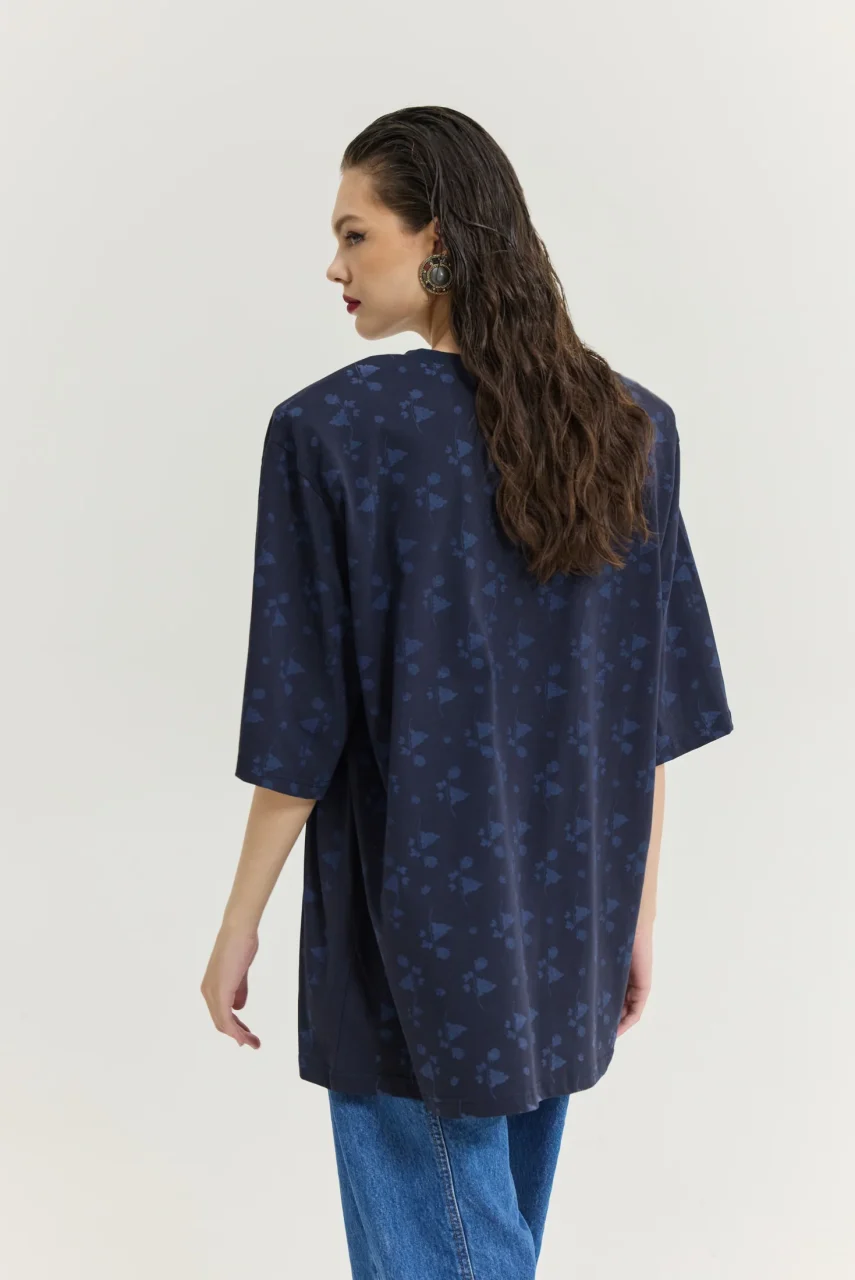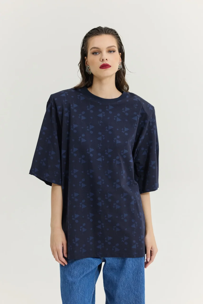 Oversized T-shirt με μπλε τριαντάφυλλα.