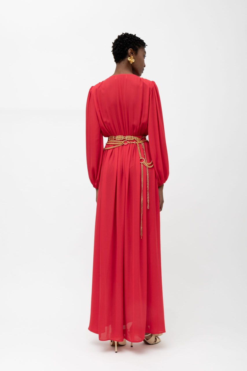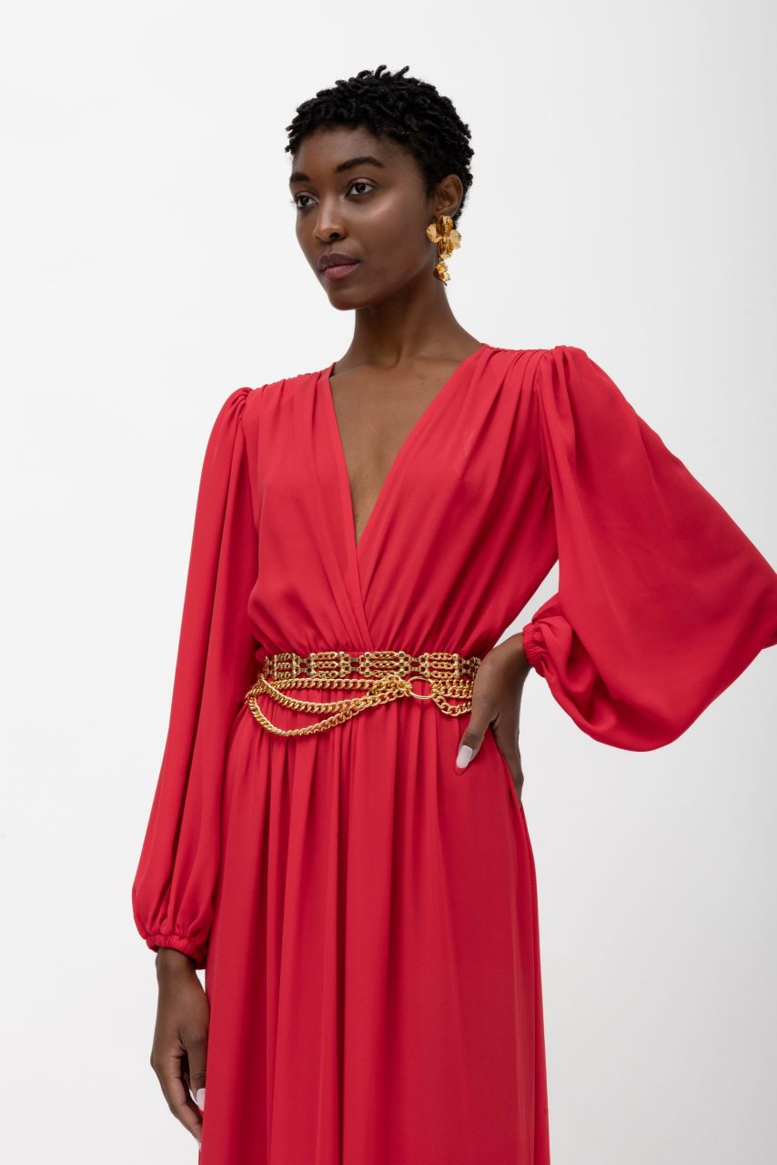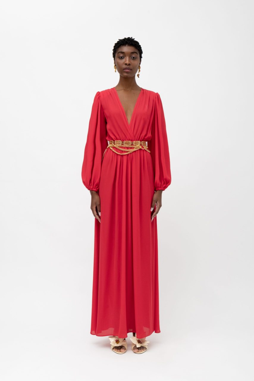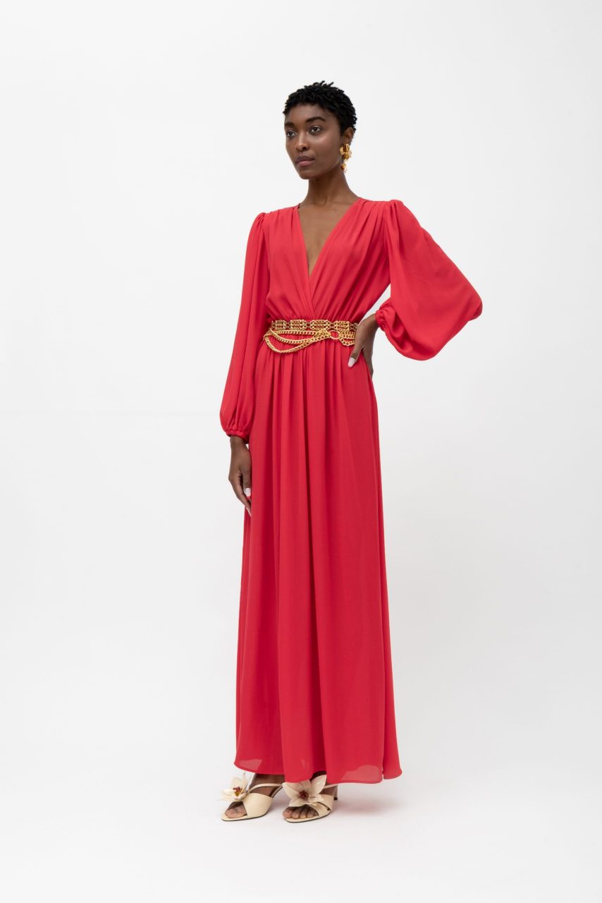 Μακρύ φόρεμα με βάτες σε κόκκινο χρώμα.