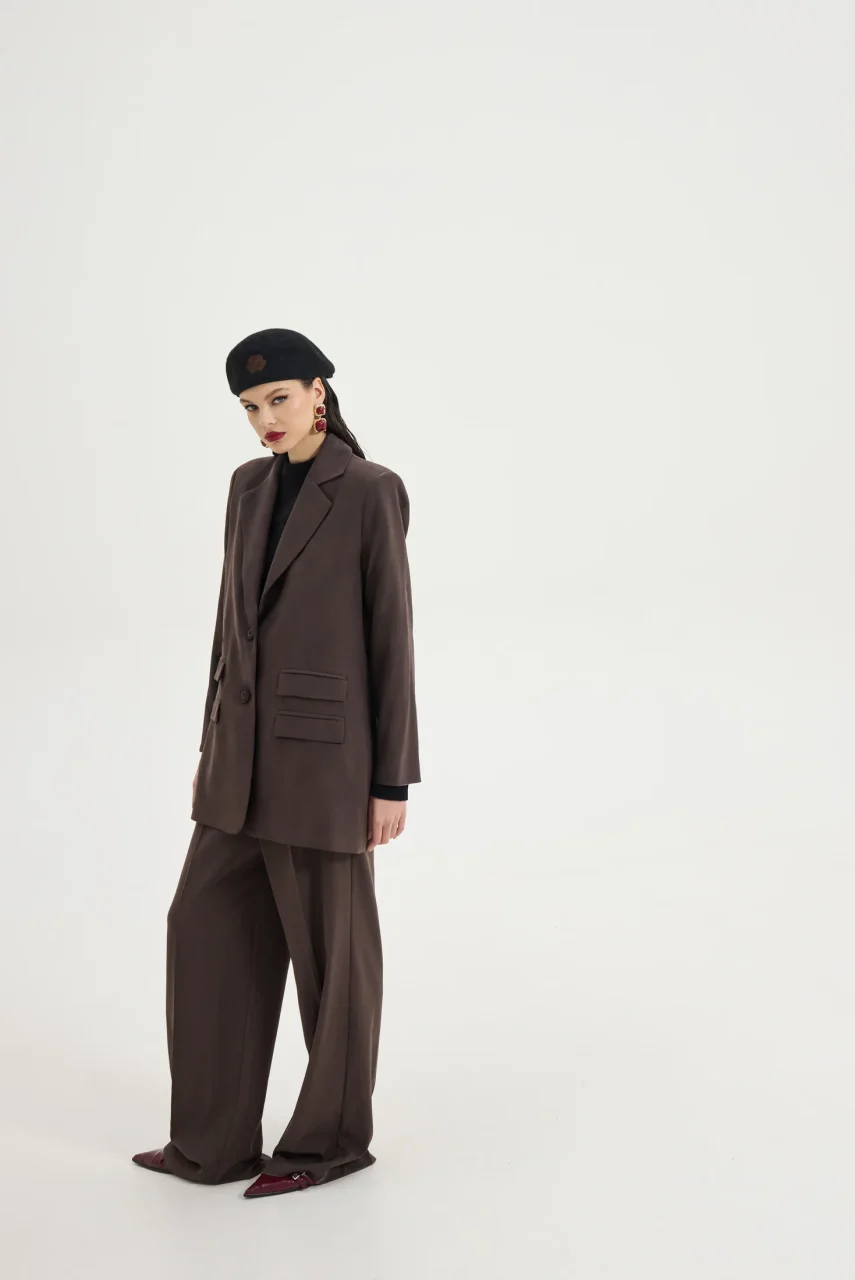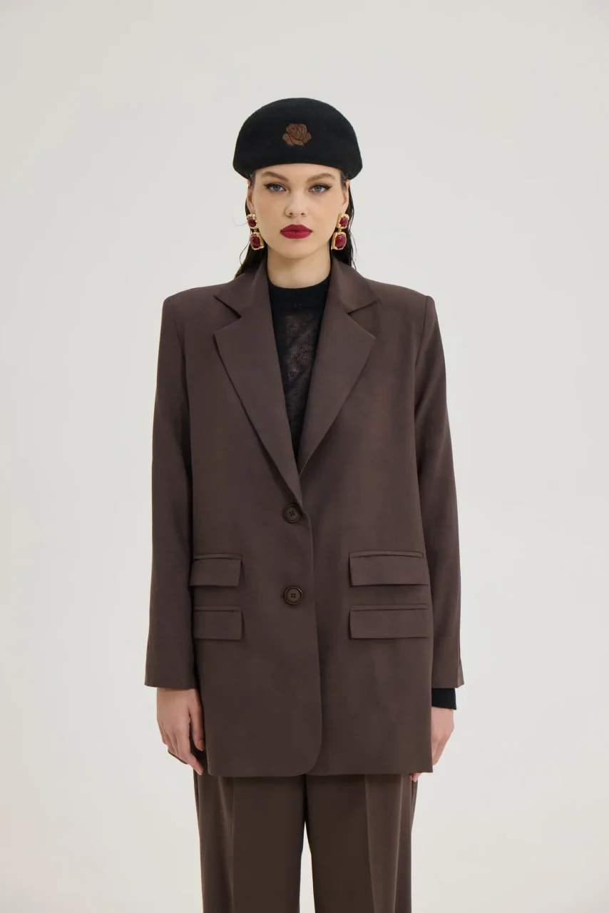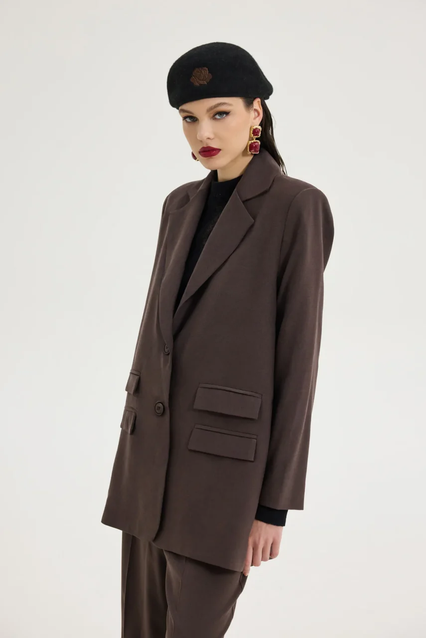 Σακάκι με βάτες σε καφέ χρώμα.