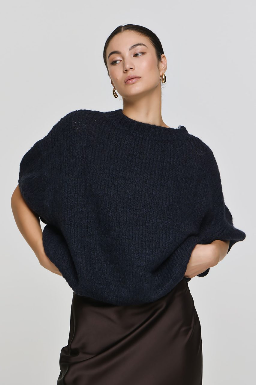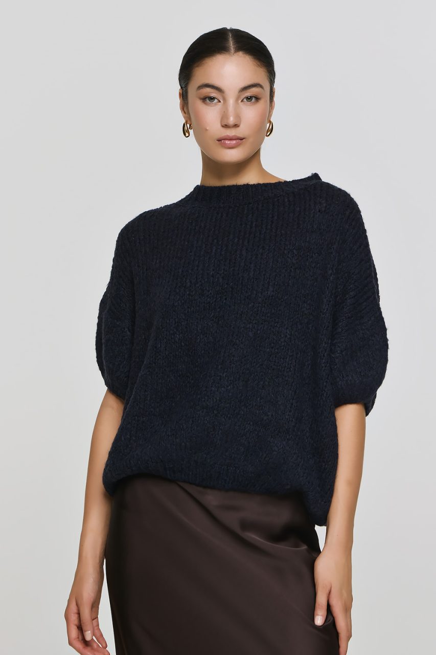 Κοντομάνικο πουλόβερ σε σκούρο μπλε χρώμα.
