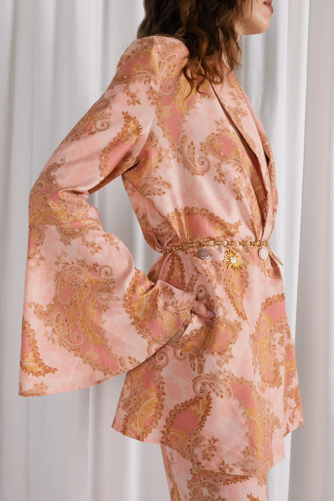 Blazer/jacket με print με αποχρώσεις του ροδακινί-ροζ.