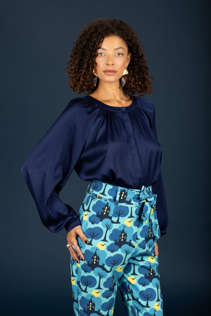 Σατινέ πουκάμισο σε μπλε χρώμα.