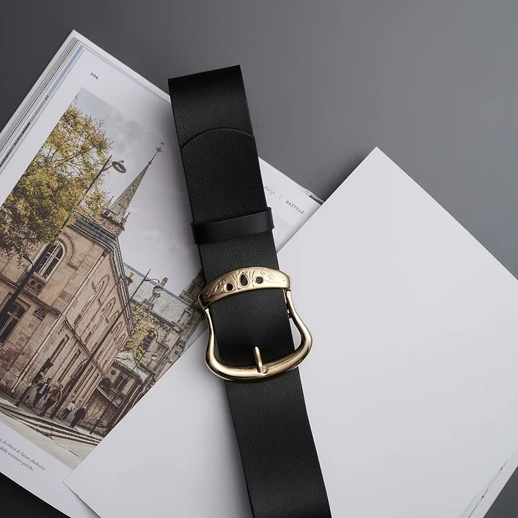 Χειροποίητη δερμάτινη ζώνη με χρυσή μεταλλική αγκράφα.​​​​