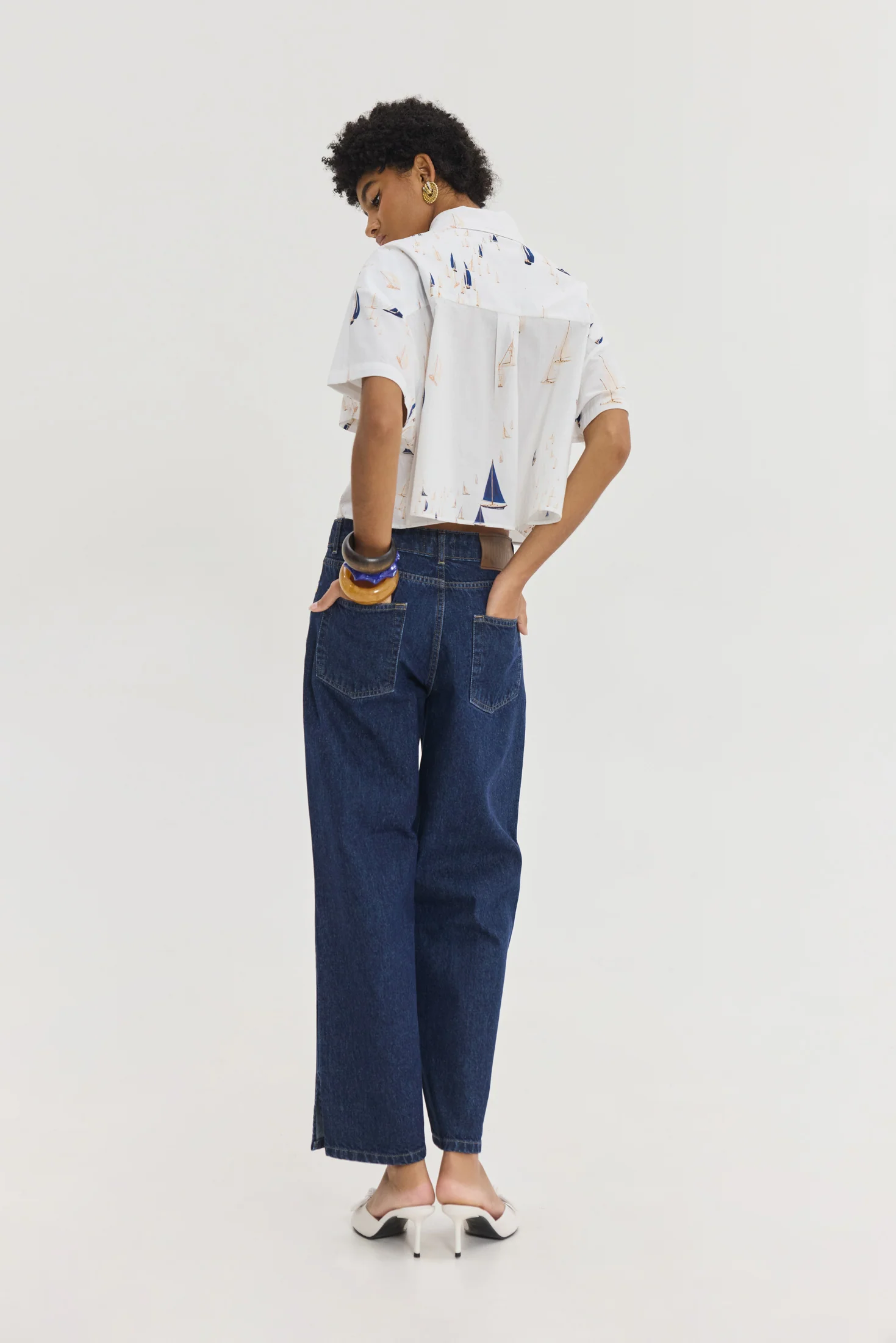 - Denim παντελόνι με σκίσιμο στον αστράγαλο
