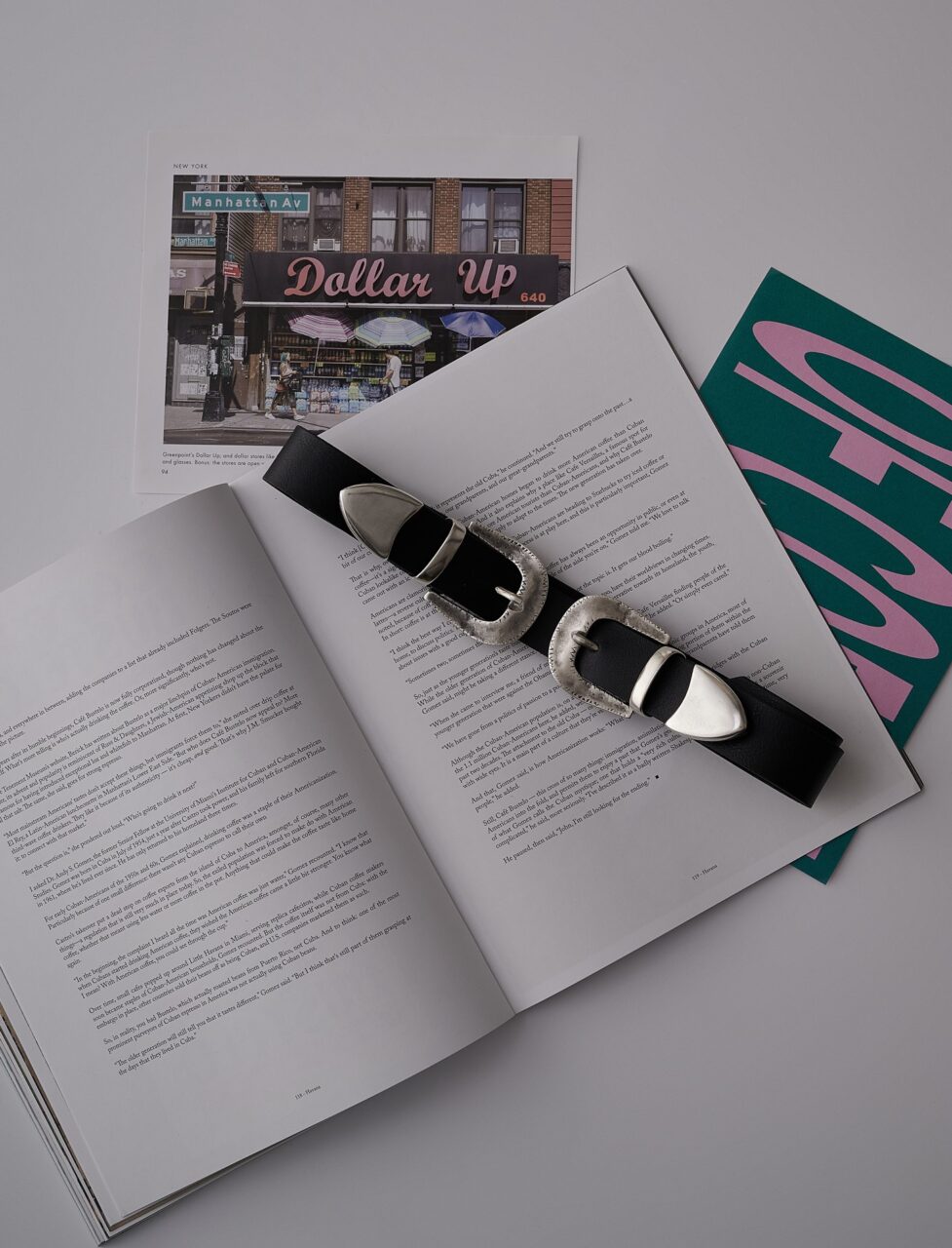 - Μαύρη δερμάτινη ζώνη με νίκελ λεπτομέρειες.