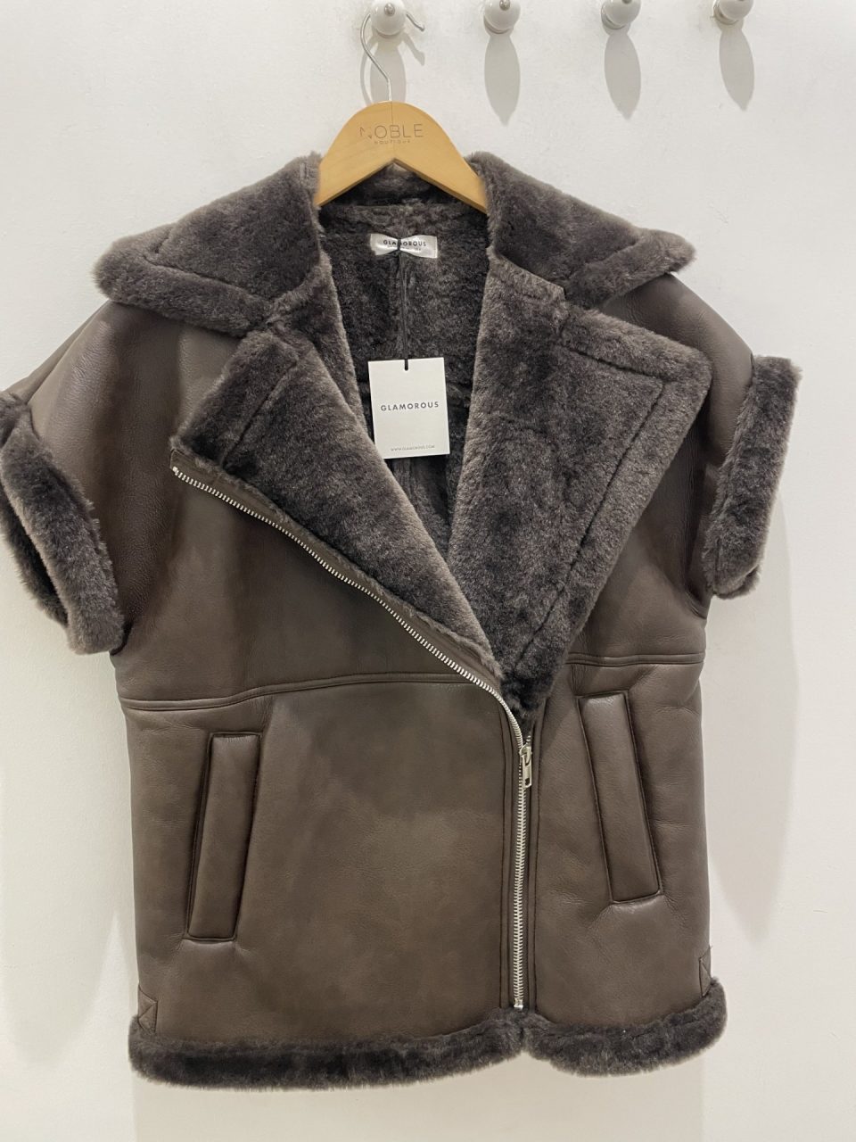 Αμάνικο τζάκετ με επένδυση teddy faux fur σε καφέ χρώμα.